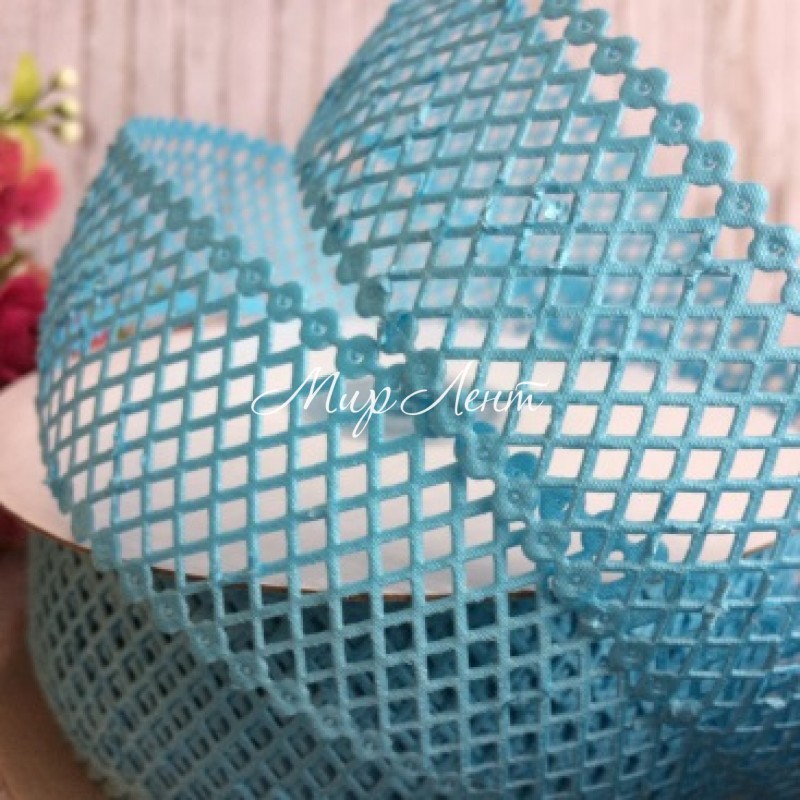 Мереживна стрічка сіточка, 4 см, світло-бірюзовий, метр