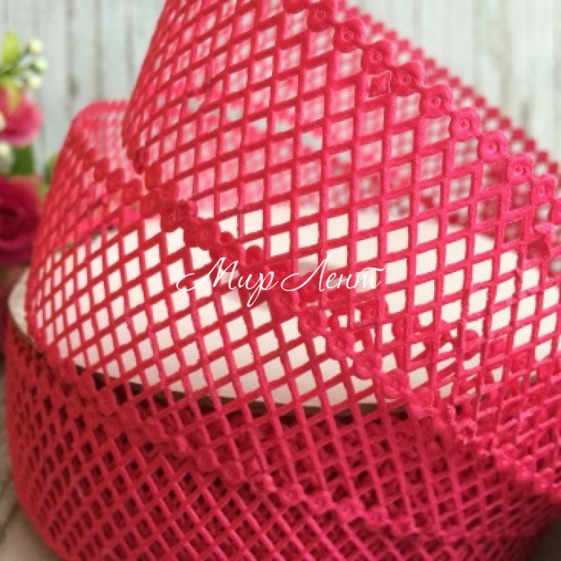 Мереживна стрічка сіточка, 4 см, світло-малиновий, метр