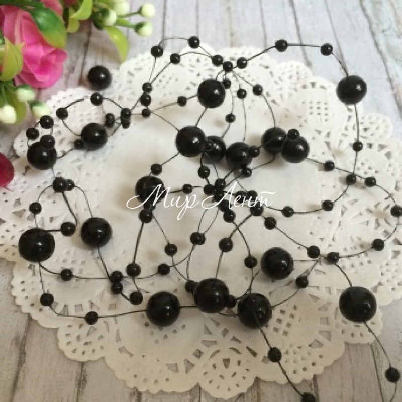 Намистини на волосіні, 8 мм, чорні, довжина нитки 1,3 м