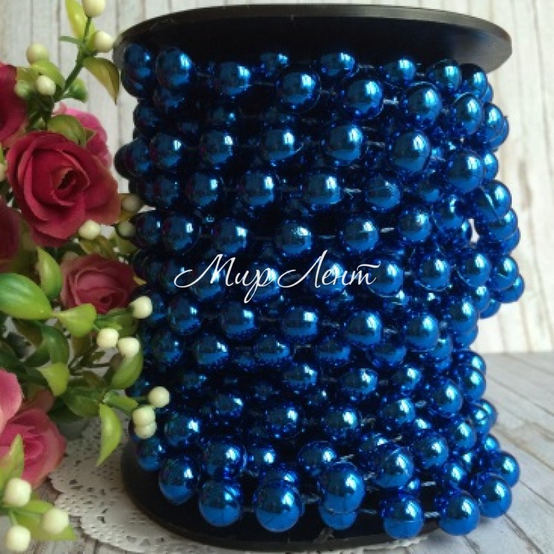 Новогодние бусы, 10 мм, синий, метр