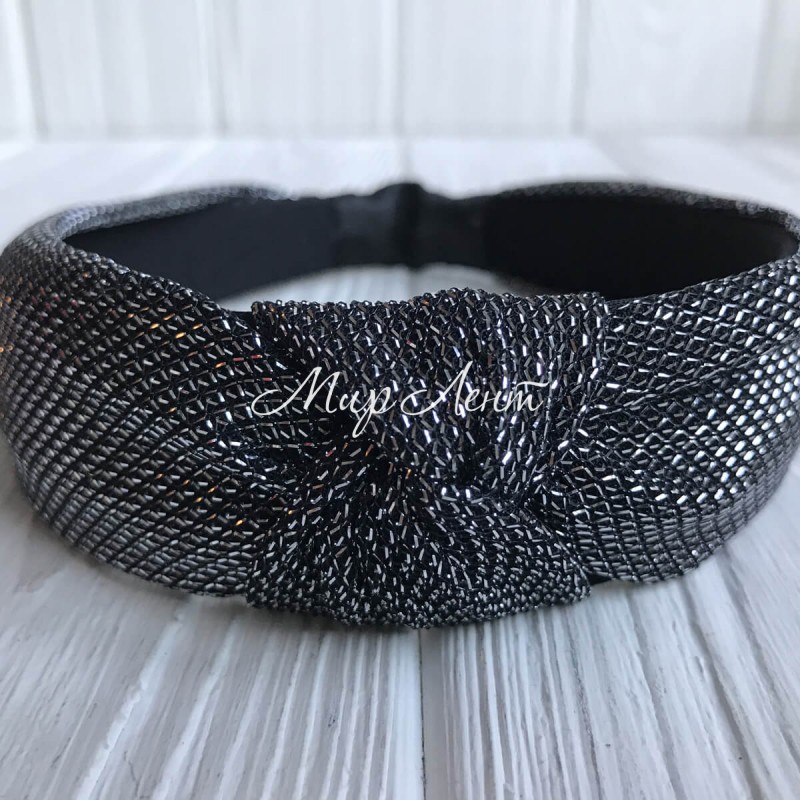 Обруч чалма блиск, 3 см, чорний зі сріблом, шт.