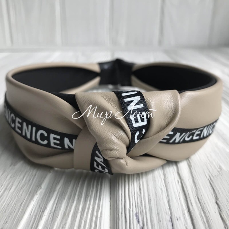 Обруч чалма з екошкіри (Nice вузька), 4 см, світло-бежевий, шт.