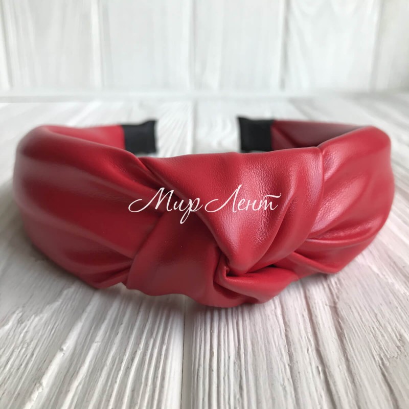 Обруч чалма з екошкіри однотонний, 4 см, червоний, шт.