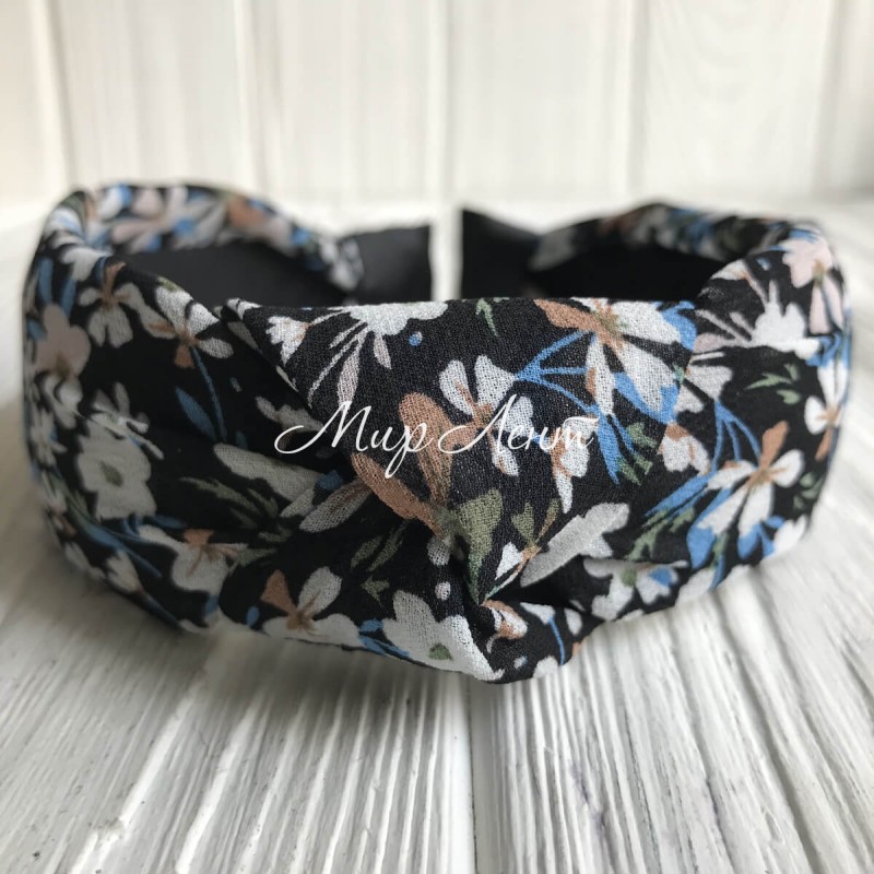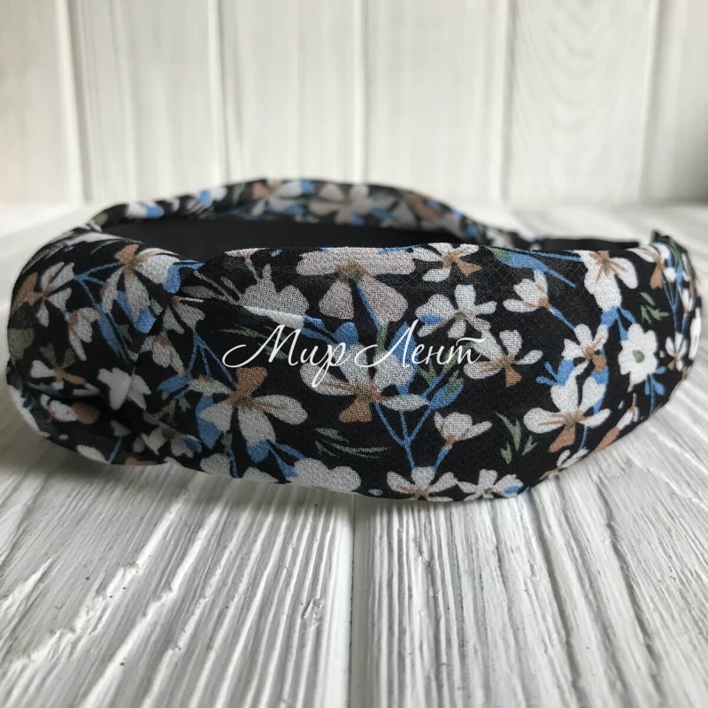 Обруч чалма шифон у квіточку, 4 см, чорний, шт.