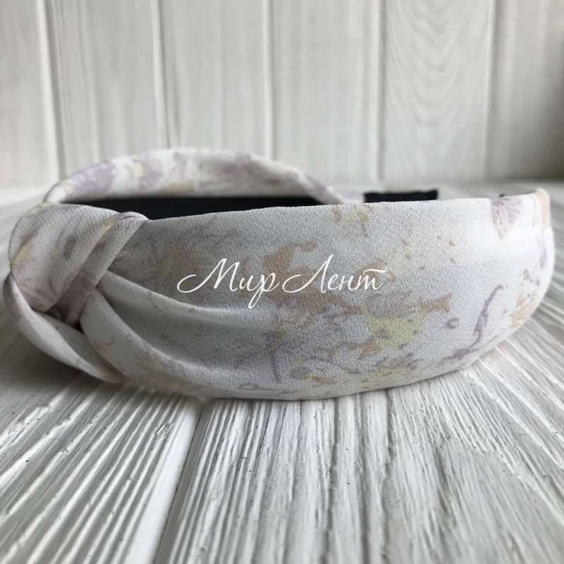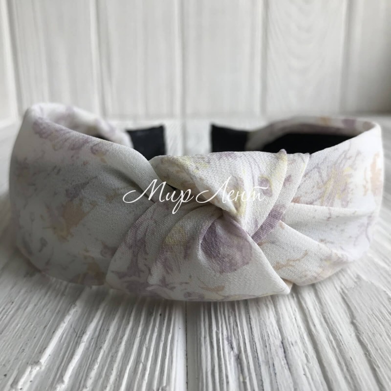 Обруч чалма шифон у квіточку, 4 см, молочно-бузковий, шт.