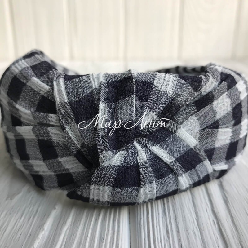 Обруч чалма шотландка, 4,5 см, чорно-білий, шт.
