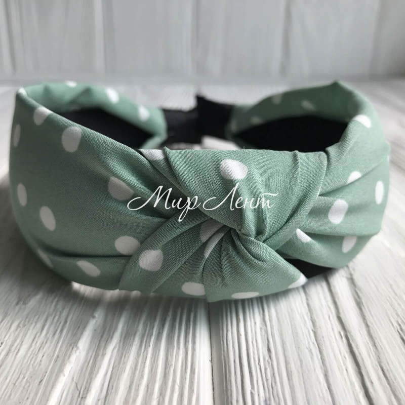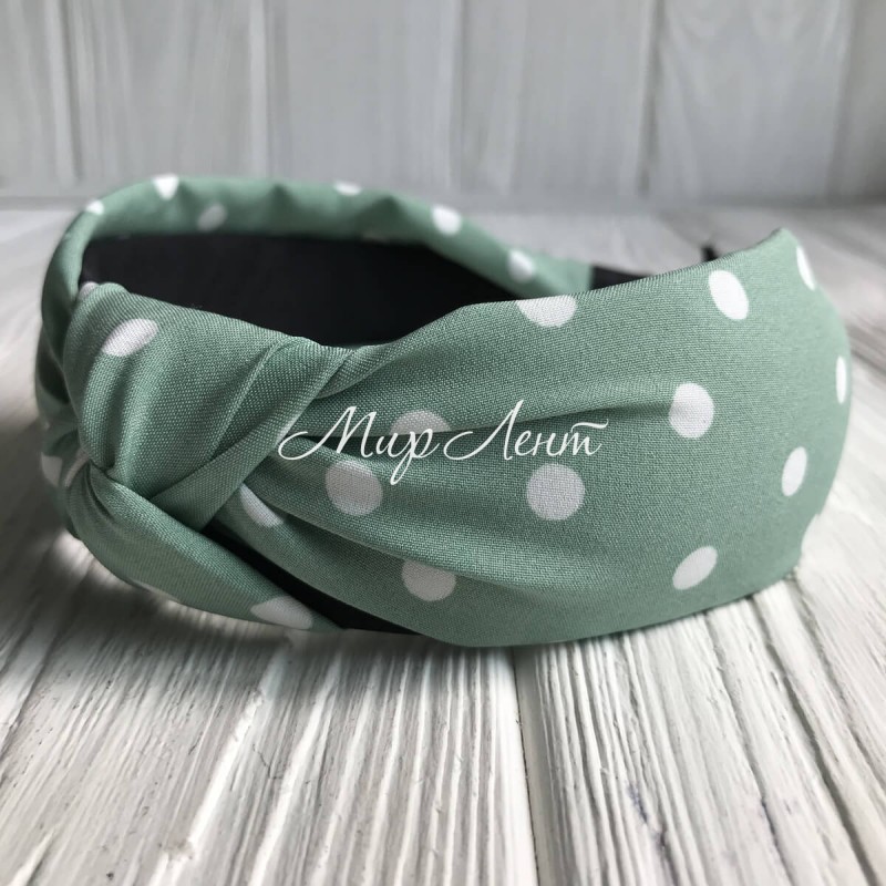 Обруч чалма тканинний у горох, 4 см, м'ятний, шт.