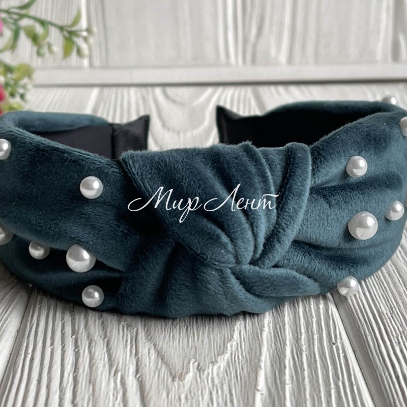 Обруч чалма велюр із перлами, 4,5 см, смарагдовий, шт.