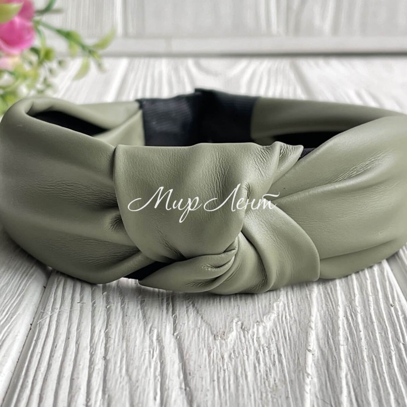 Обруч чалма з екошкіри однотонний, 4 см, оливковий, шт.