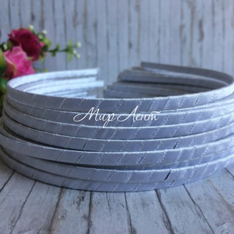 Обруч обмотаний атласною стрічкою, 6 мм, білий