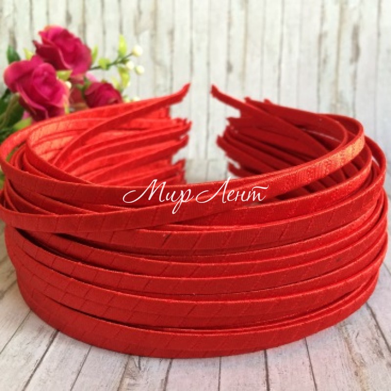 Обруч обмотаний атласною стрічкою, 6 мм, червоний