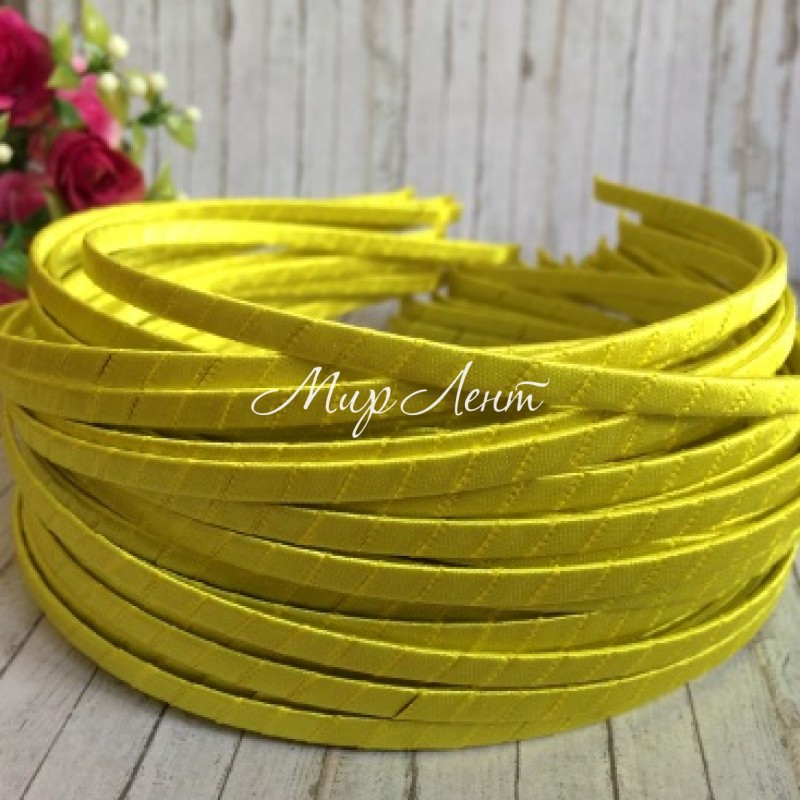 Обруч обмотаний атласною стрічкою, 6 мм, жовтий