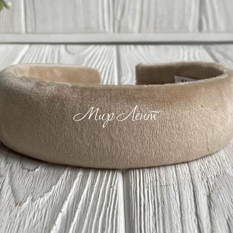 Обруч велюр об'ємний, 4 см, бежевий, шт.