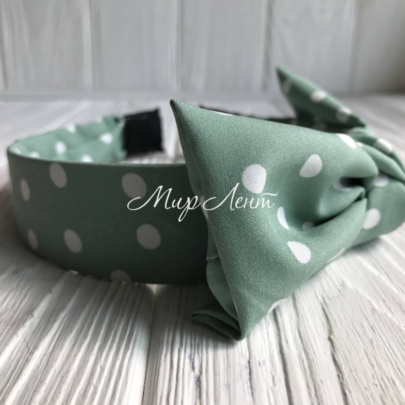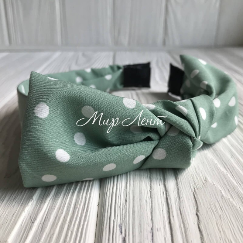 Обруч тканинний у горох з бантом, 3,2 см, м'ятний, шт.