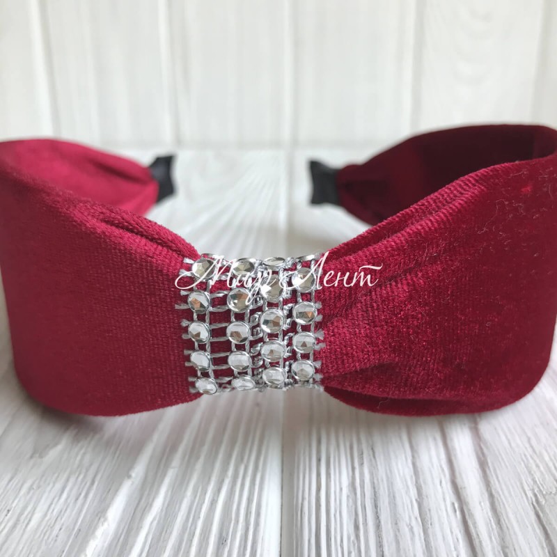 Обруч велюр із вставкою з каміння, 5 см, малиново-червоний, шт.
