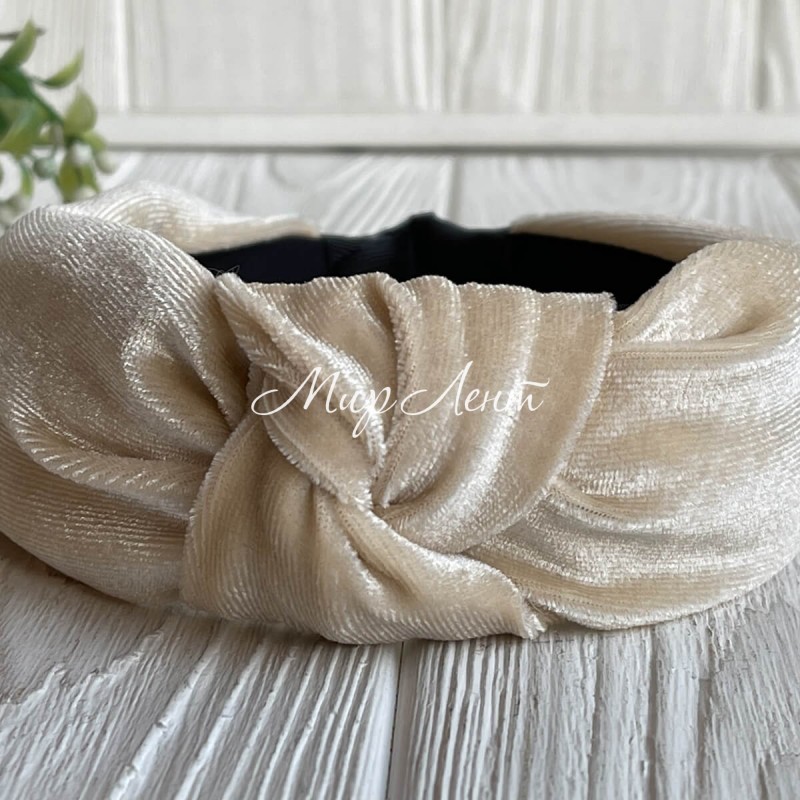 Обруч чалми велюр широкий, 4,5 см, молочний, шт.