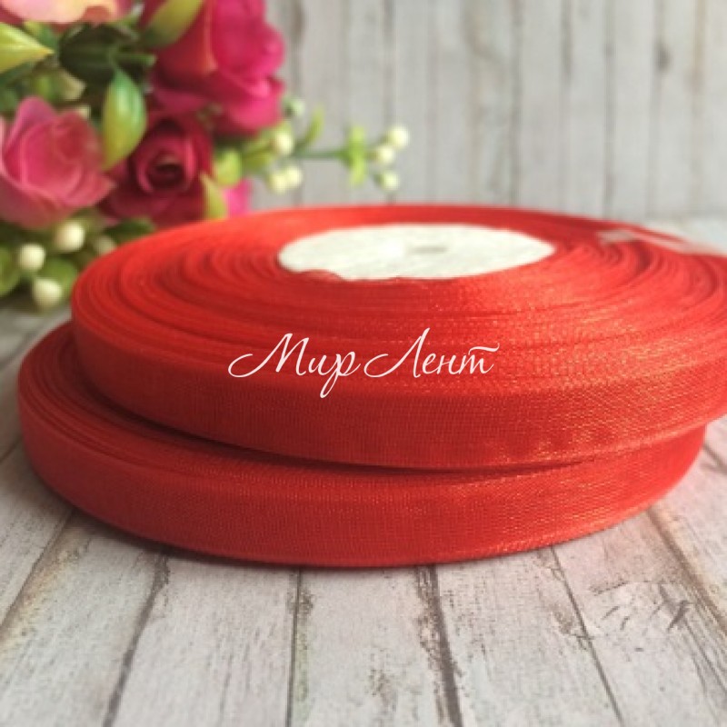Органза 0,6 см, красная, рулон 45 м