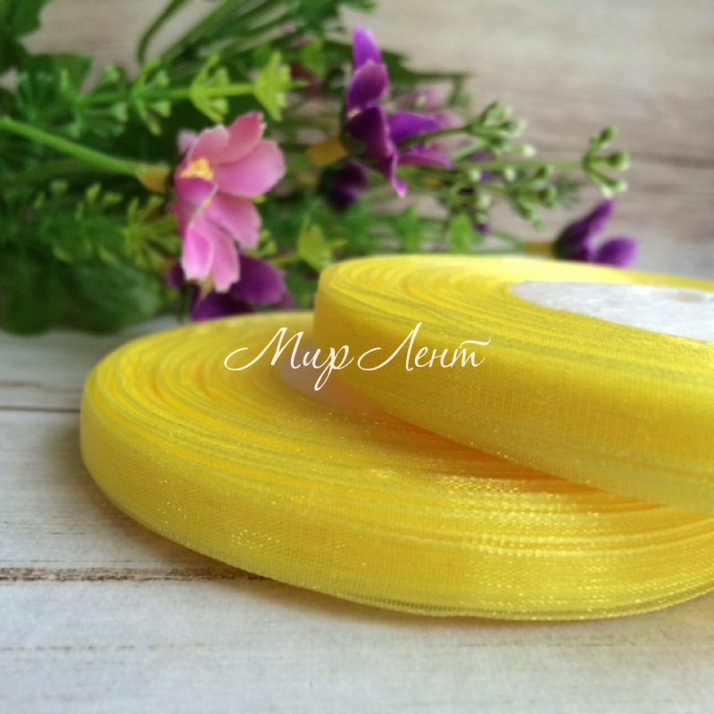 Органза 0,6 см, желтая, рулон 45 м