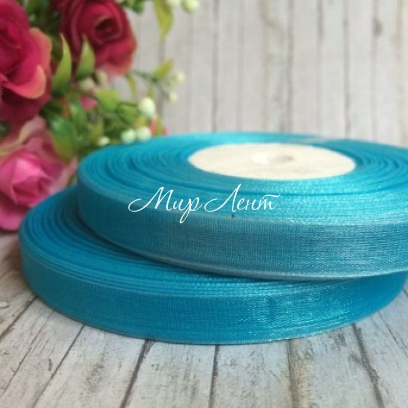 Органза 0,9 см, бирюзовая, рулон 45 м