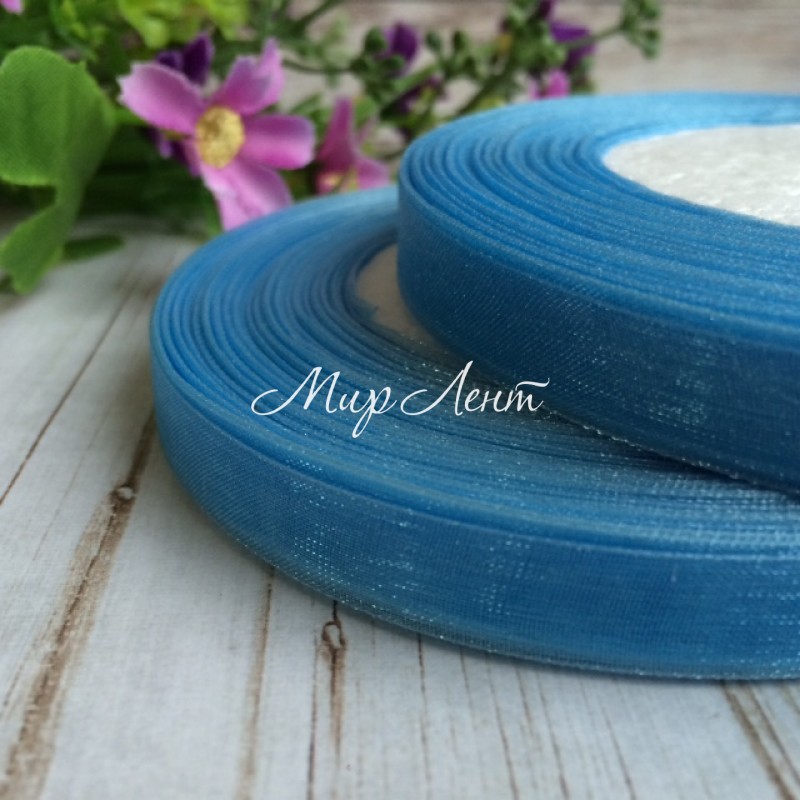 Органза 0,9 см, голубой, рулон 45 м