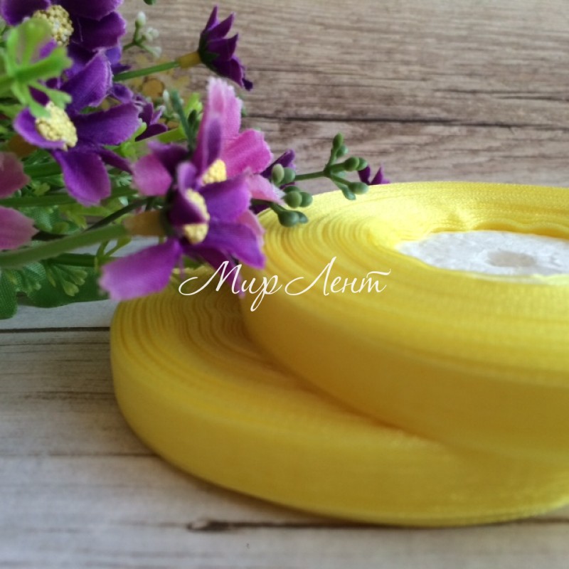 Органза 0,9 см, желтая, рулон 45 м