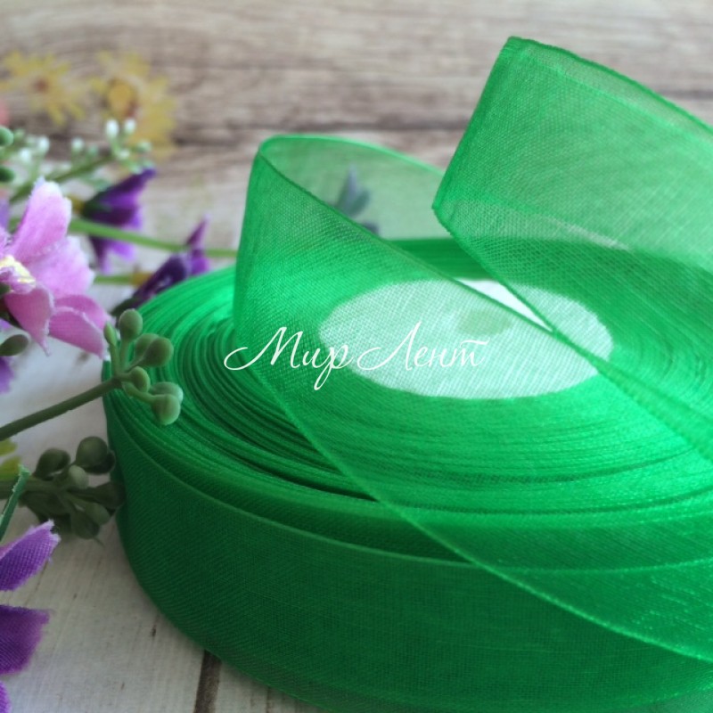 Органза 2 см, зелений, метр