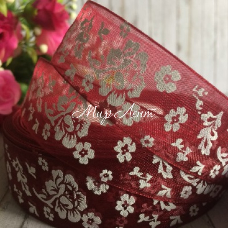 Органза з прошитим кантом, 3 см, блідо-сірий, рулон 23 м