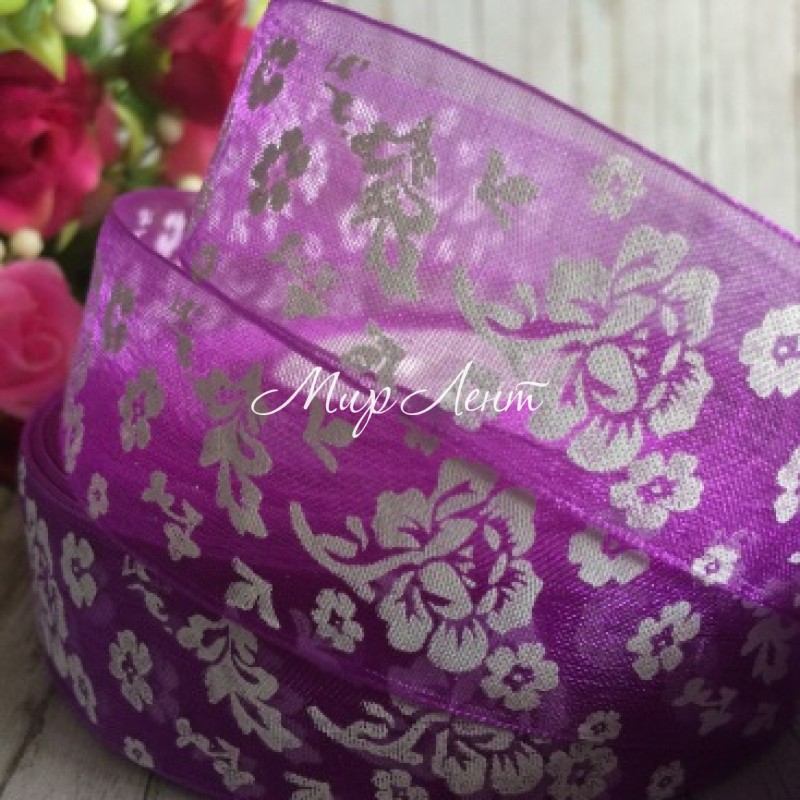 Органза з прошитим кантом, 3 см, блідо-сірий, рулон 23 м