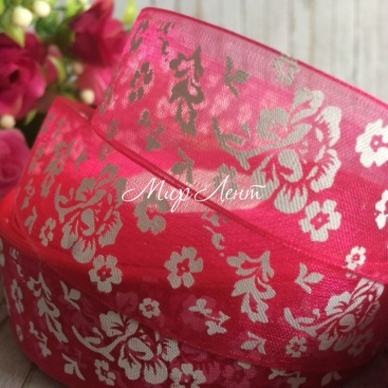 Органза півонія, 2,5 см, малиновий