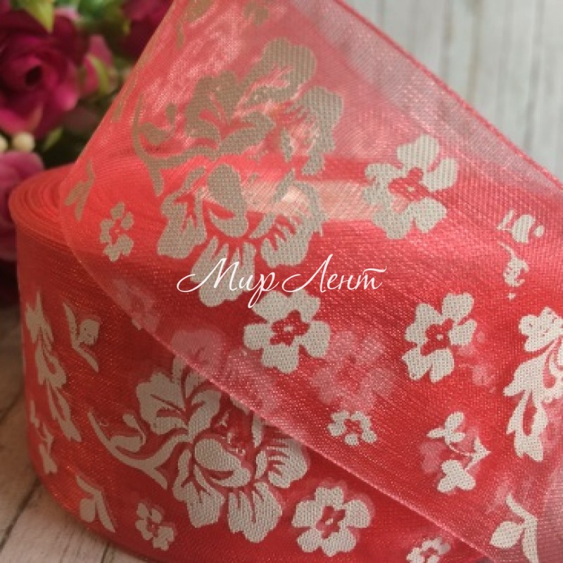 Обруч чалма шифон у квіточку, 4 см, кораловий, шт.