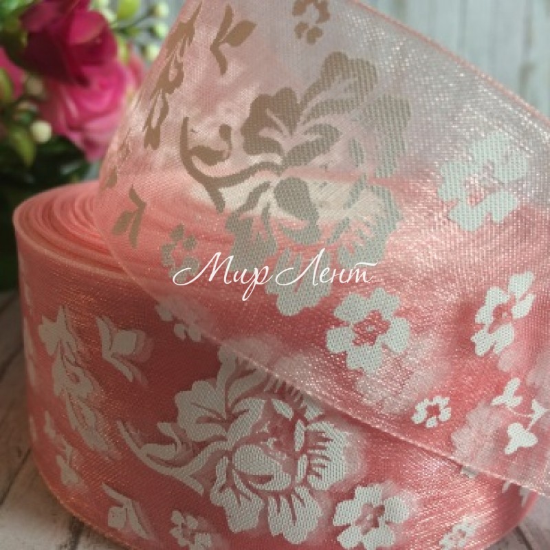 Органза півонія, 4 см, пудровий