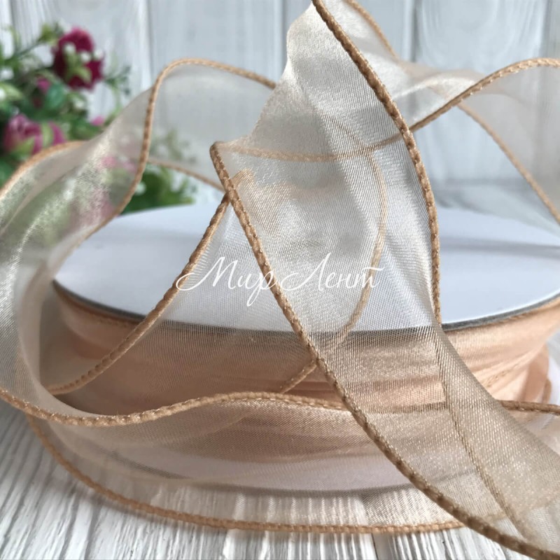 Органза з прошитим кантом, 3 см, бежевий, рулон 23 м