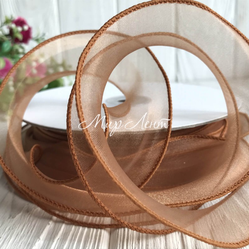 Органза з прошитим кантом, 3 см, карамельний, рулон 23 м