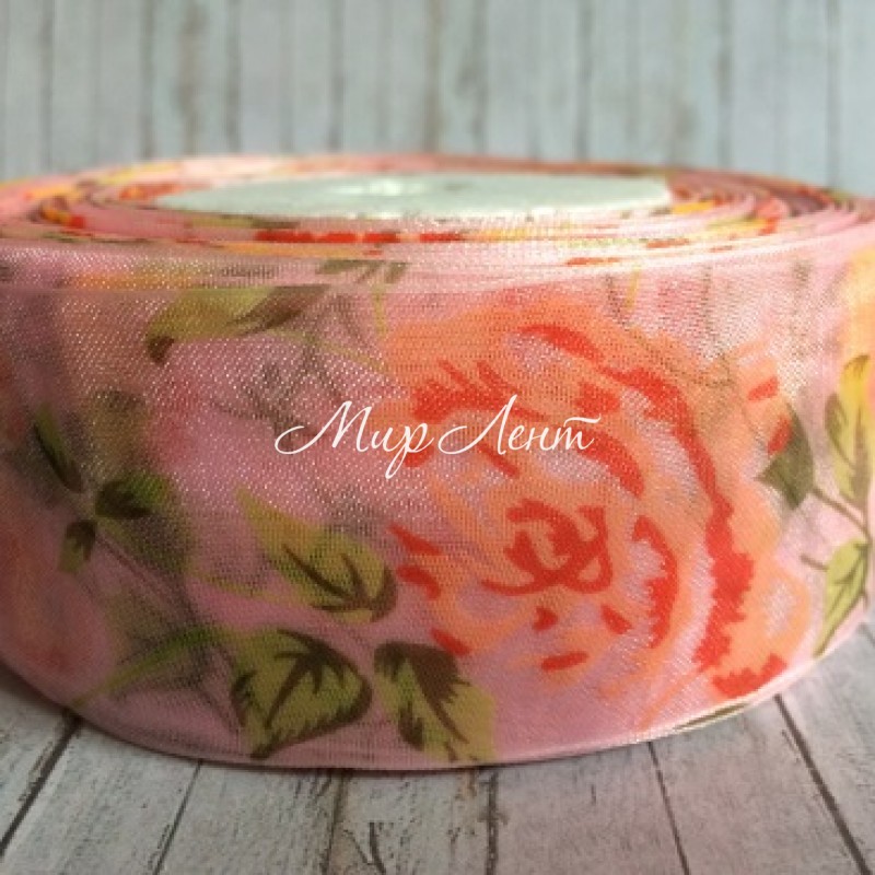 Органза троянда 4 см, світло-рожева
