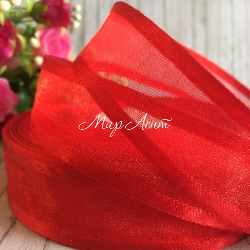 Органза з вишитим візерунком, 2,5 см, малиновий, метр