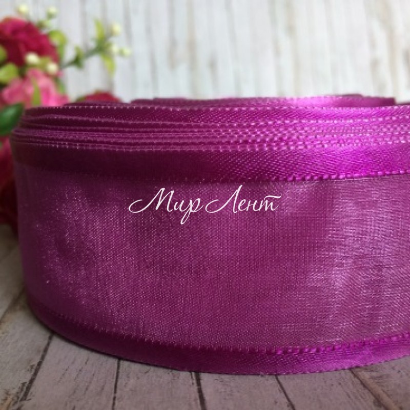 Органза з атласним кантом, 4 см, бузковий
