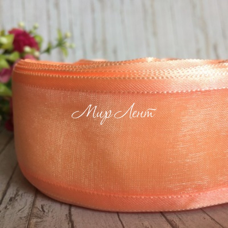 Органза з атласним кантом, 4 см, персиковий