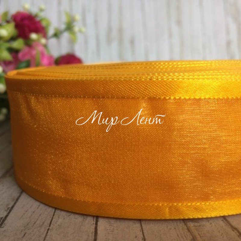 Органза з атласним кантом, 4 см, темно-жовтий