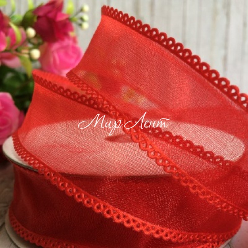 Органза з ажурним краєм, 2,5 см, темно-синій