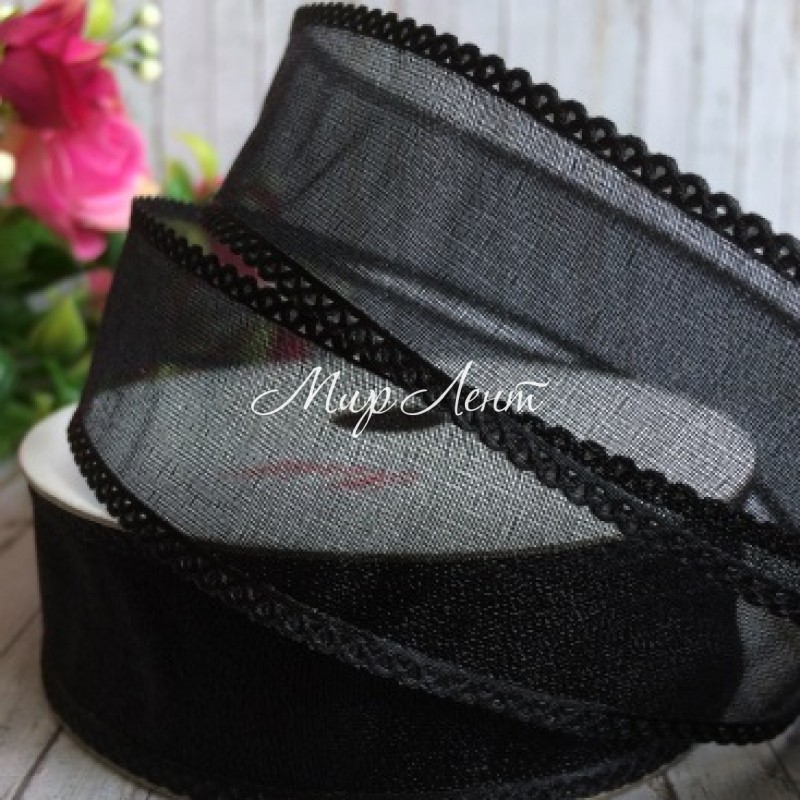 Органза з ажурним краєм, 2,5 см, темно-фіолетовий