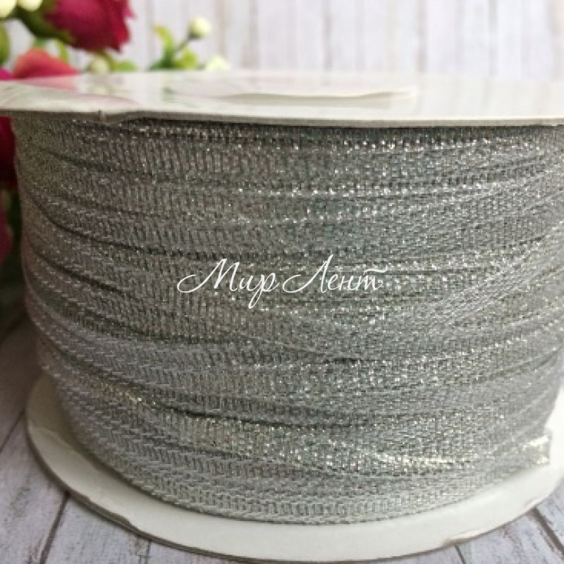 Парча 0,3 см, срібло, рулон 229 м