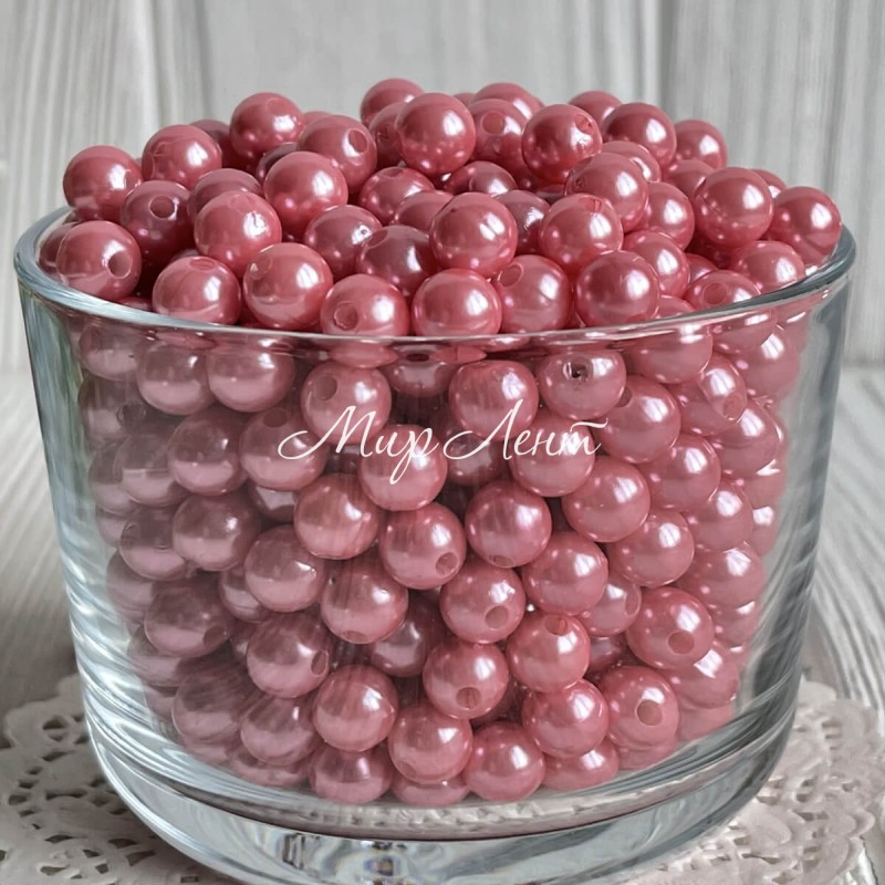 Перли 8 мм Vip, темно-рожевий, 1 шт. (пластик)