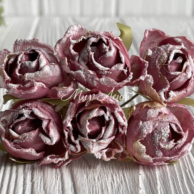 Півонія тканинна з білим кантом, 3,5 см, пудровий, пучок