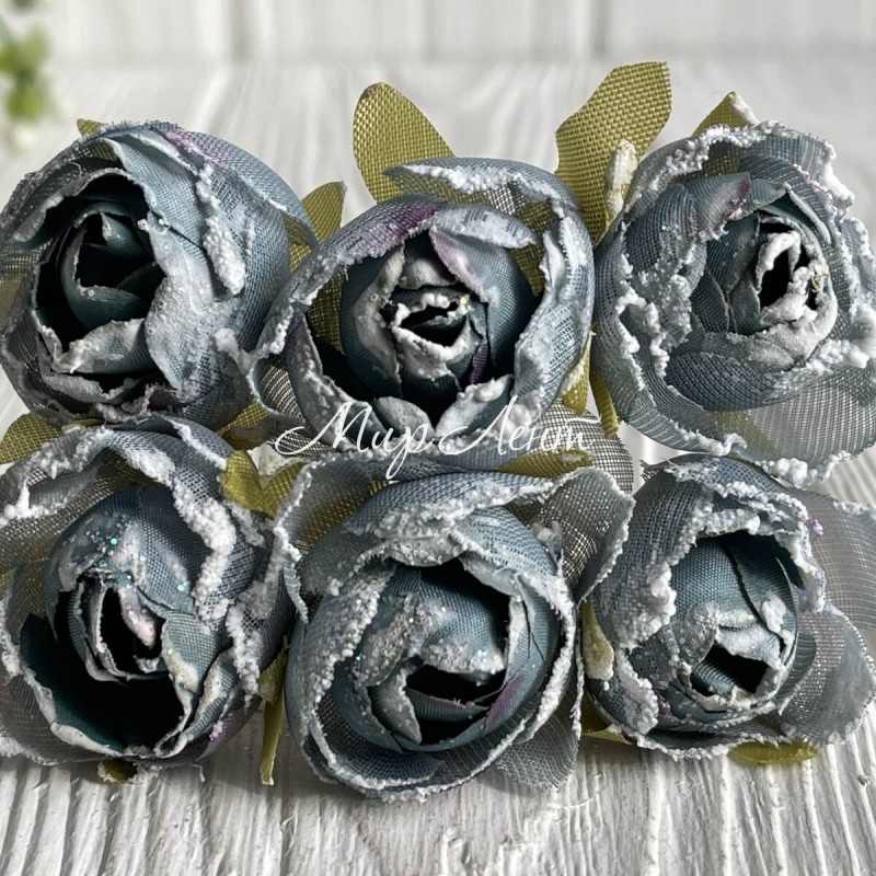 Півонія тканинна з білим кантом, 3,5 см, сіро-блакитний, пучок