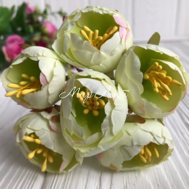 Півонія весняна, 3 см, ніжно-салатовий, пучок