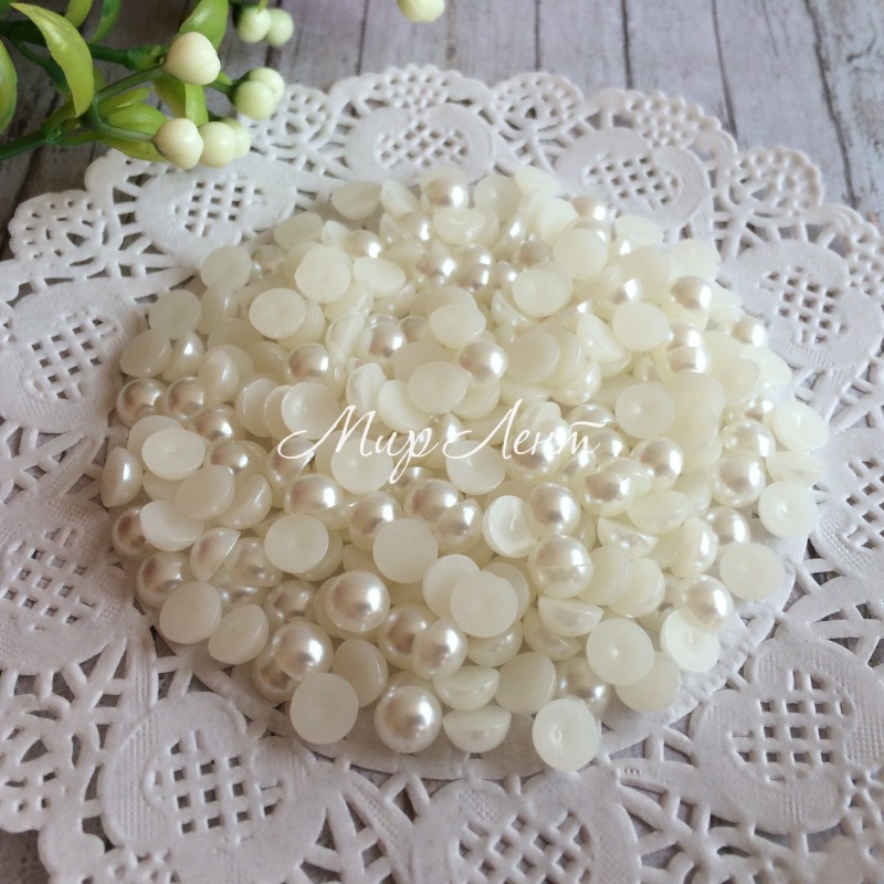 Напівбусина, 6 мм, молочна, 100 шт.