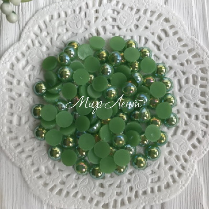 Напівбусина, 8 мм, середньо-зелений перламутр, 100 шт.