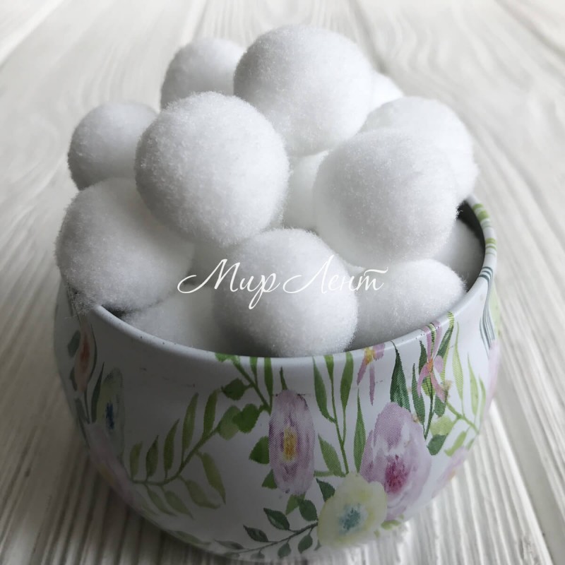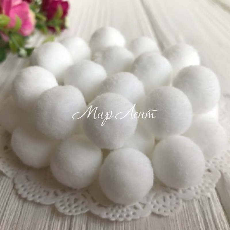 Помпони оксамитові, 2 см, білий, за 1 шт.
