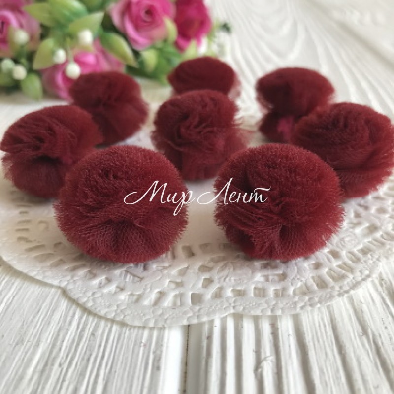 Помпони із фатину, 2,5 см, бургунді, шт.