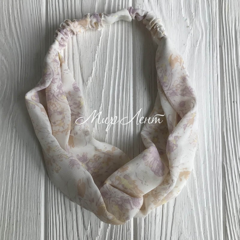 Пов'язка-плетіння шифон у квіточку, 6 см, молочно-бузковий, шт.